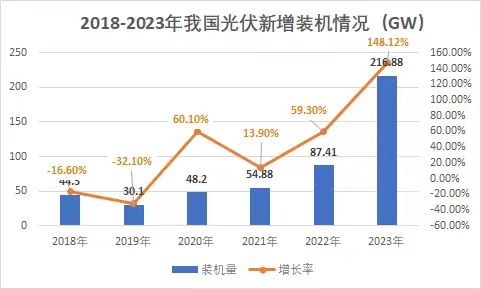 裝機(jī)量再度刷新!光伏市場(chǎng)持續(xù)火熱! 1月26日,國(guó)家能源局發(fā)布2023年全國(guó)電力工業(yè)統(tǒng)計(jì)數(shù)據(jù)。2023年1~12月光伏新增裝機(jī)216.88GW,同比增長(zhǎng)148.12%。 去年,對(duì)于光伏行業(yè)來講是爆發(fā)式增